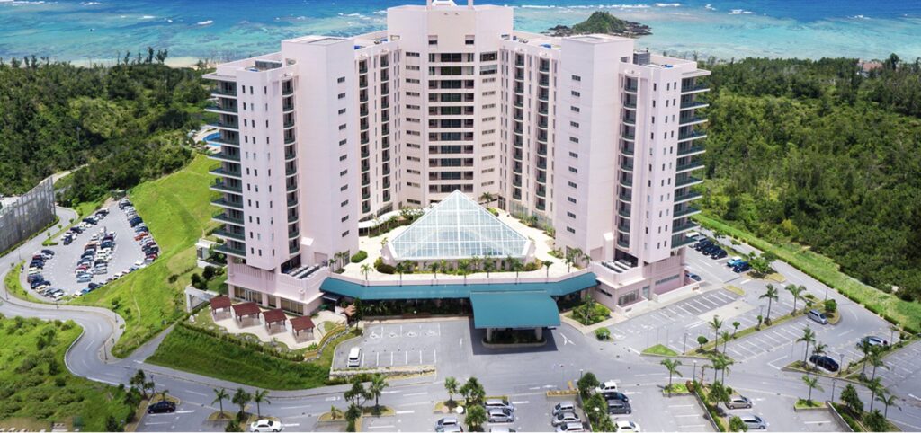 The hotel is located in Nago, the northern area of Okinawa, sitting on a hillside with a beautiful view of the East China Sea.